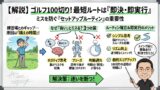 ②コースに行くと、OBがあったり、池があったりしますし、いつものスイングをするのが難しくなります。特に、リズムやテンポが早くなってしまうと、ナイスショットができなくなってしまいますので、いつものリズムやテンポを思い出していただくといいです。そのためにはどうしたらいいかというと、特定のクラブで特定の振り幅で振った時に、いつでも同じ距離を打っていただくといいです。例えば普段サンドウエッジでハーフスイングしたときに50ヤード飛ぶのであれば、朝の練習場でも同じ距離を打つように練習していただくといいです。